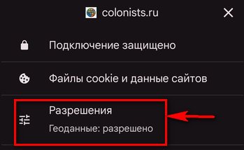 Установите "Геоданные" в значение "Разрешить" и закройте настройки, нажав на крестик